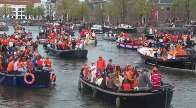В Амстердаме с размахом отметили 59-летие короля Виллема-Александра. В честь монарха тысячи горожан и туристов заполнили лодками городские каналы. Большинство в одежде оранжевого цвета, передает «24KZ».
