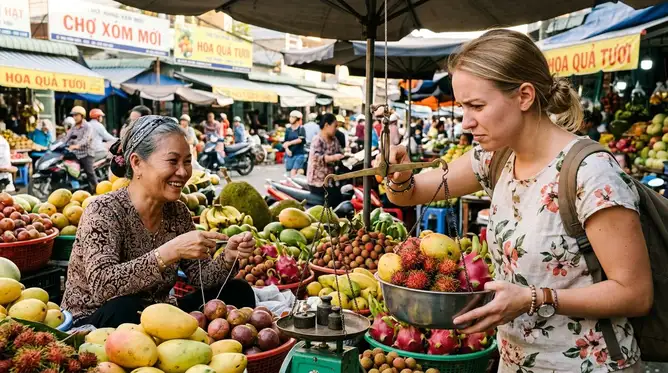 Проблема не в том, что фрукты здесь дороги. Проблема в волшебных весах и мгновенно меняющемся курсе валют. Механизм прост: турист выбирает фрукты, продавец взвешивает их на электронных весах, показывает цифру, например, 1.5 кг, и быстро, на калькуляторе, выводит сумму. Вот тут и начинается магия. Цена за килограмм, только что озвученная как 50 000 донгов (около 150 рублей), в калькуляторе может волшебным образом превратиться в 70 000. А вес в 1.5 кг — в 2.2. Самые распространенные уловки: